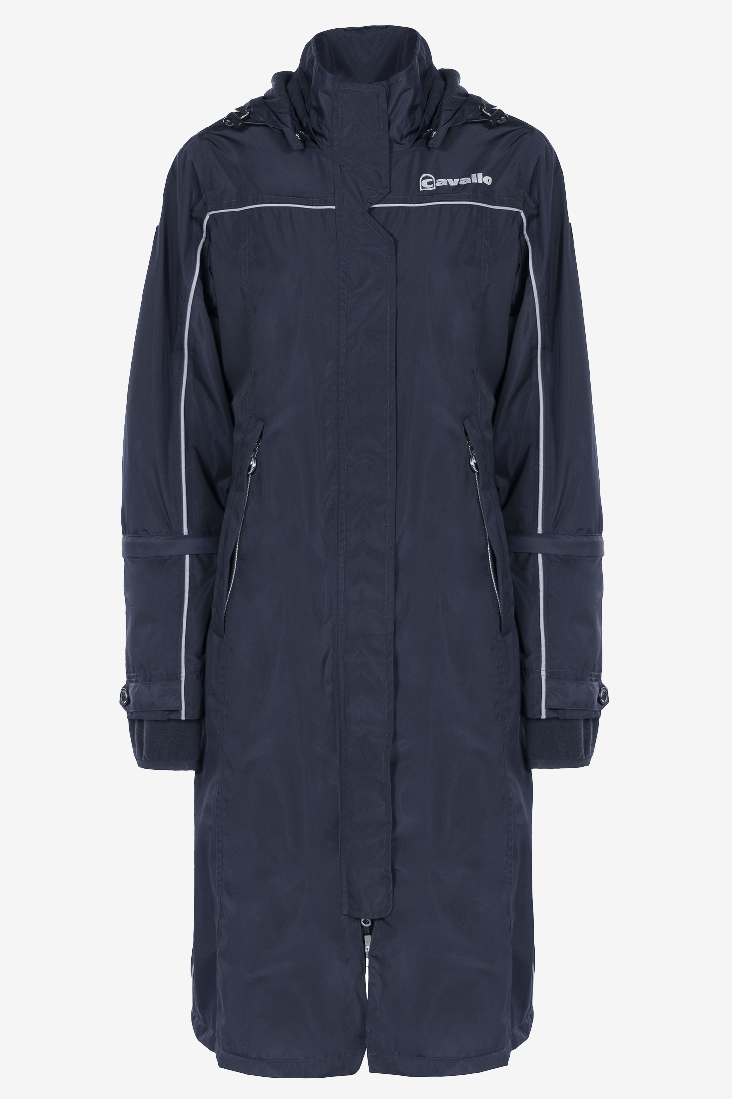 Den aftagelige og justerbare hætte er designet til at passe over hjelmen, og elastiske benstropper med velcrolukning holder frakken på plads under ridningen. Sikre lynlåslommer beskytter dine værdigenstande, og et smart regnovertræk til sadlens forvulst er praktisk opbevaret i forlommen.