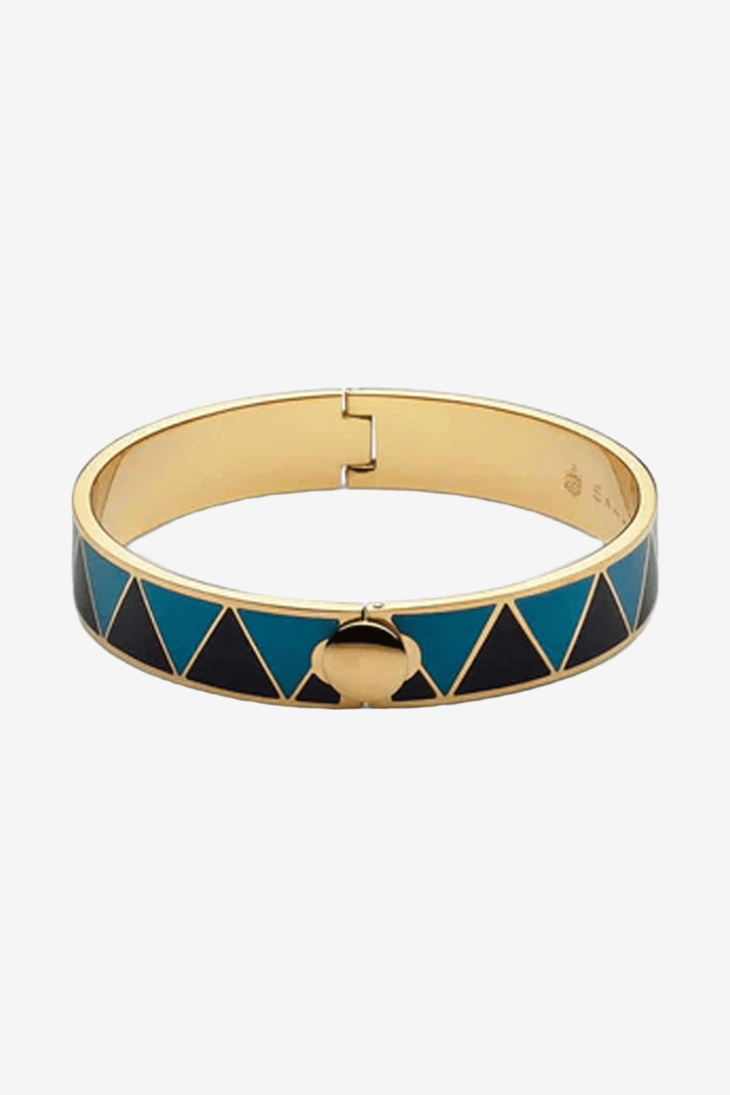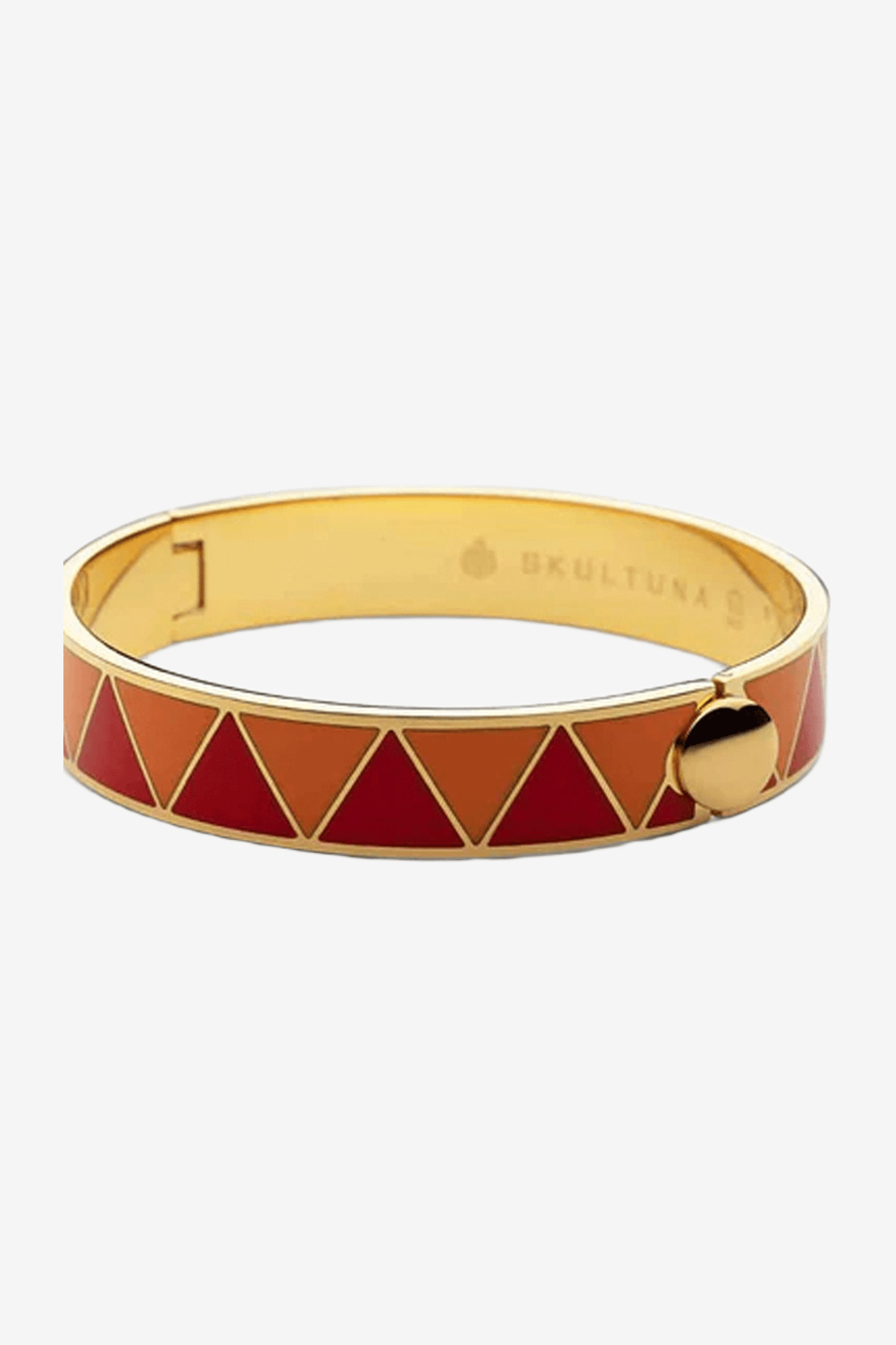 Armbåndet er 9 mm bredt, håndmalet emalje og 18ct guldbelægning.