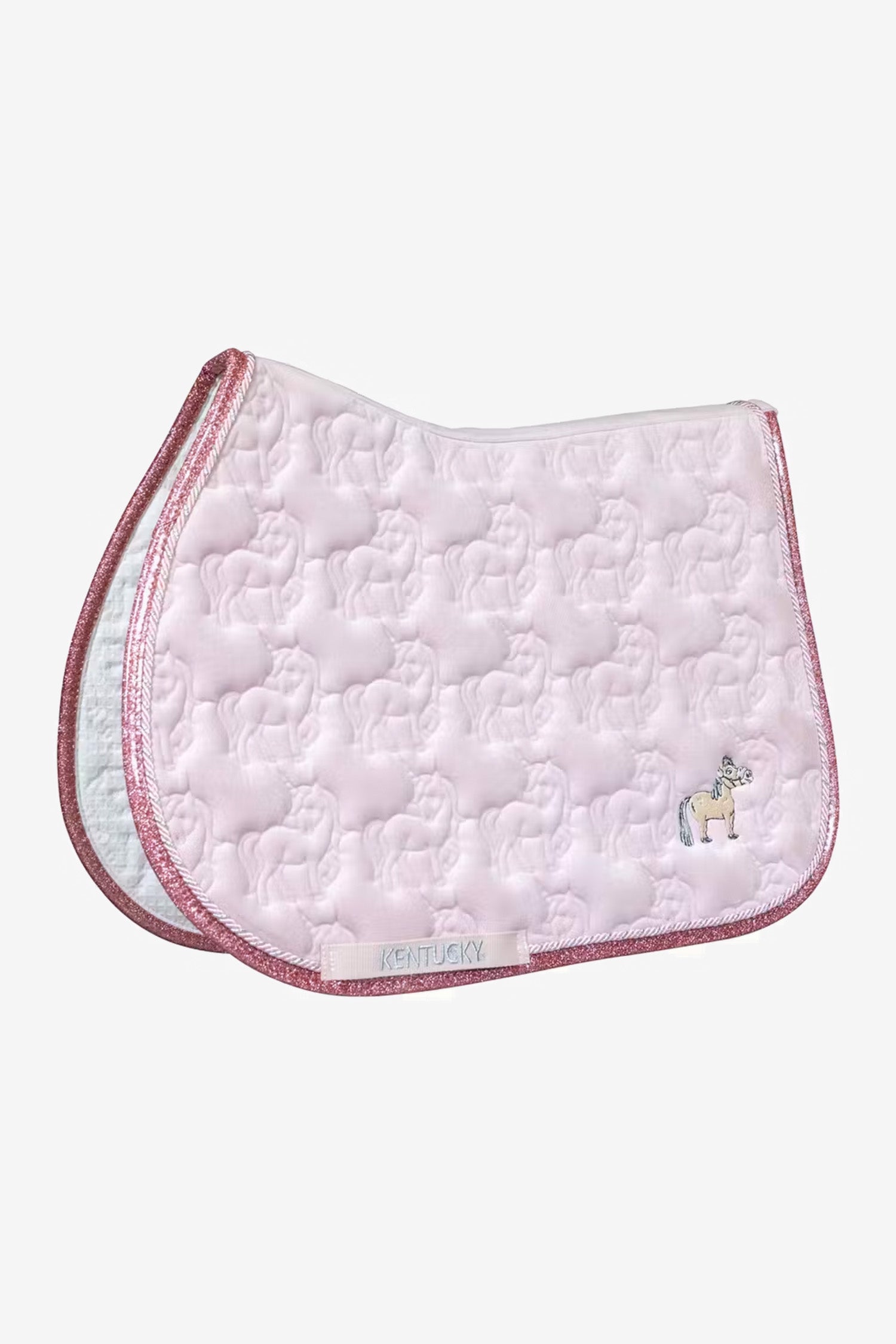 Dette schabrak kombinerer legende design med praktisk funktionalitet. Den glitrende rosaguld-detalje tilføjer et elegant touch, mens quiltningen med enhjørninger gør det unikt og fortryllende. Perfekt både til træning og til at skinne i stalden. Match gerne med vores Unicorn Glitter fluehætte for et komplet magisk look!