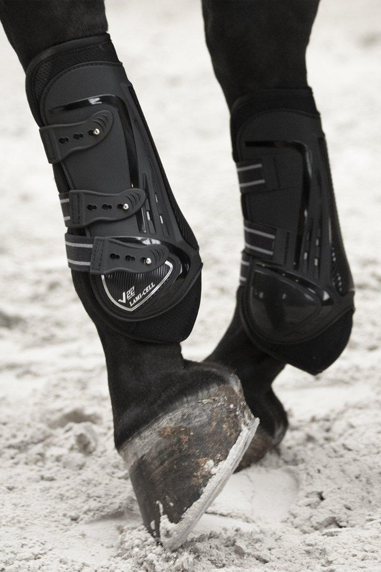 Et par lette gamacher med et ydre skal af PU. Derudover er de foret med poron for ekstra stødabsorbering. Dette materiale er blødt og fleksibelt, men ved hurtige bevægelser som slag eller stød bliver det hårdt og absorberer kraften, hvilket beskytter hestens ben.