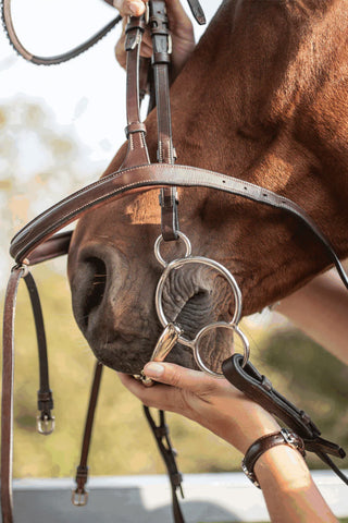 Pessoa- und 2,5-Ring-Gebisse sind beliebte Optionen für Reiter, die mehr Kontrolle und eine klare Kommunikation mit ihrem Pferd wünschen, besonders beim Springen oder bei energischeren Pferden. Das Gebiss ist mit mehreren Ringen ausgestattet, sodass der Druck und die Hebelwirkung – von milder bis stärker – je nach Zügelposition angepasst werden können.