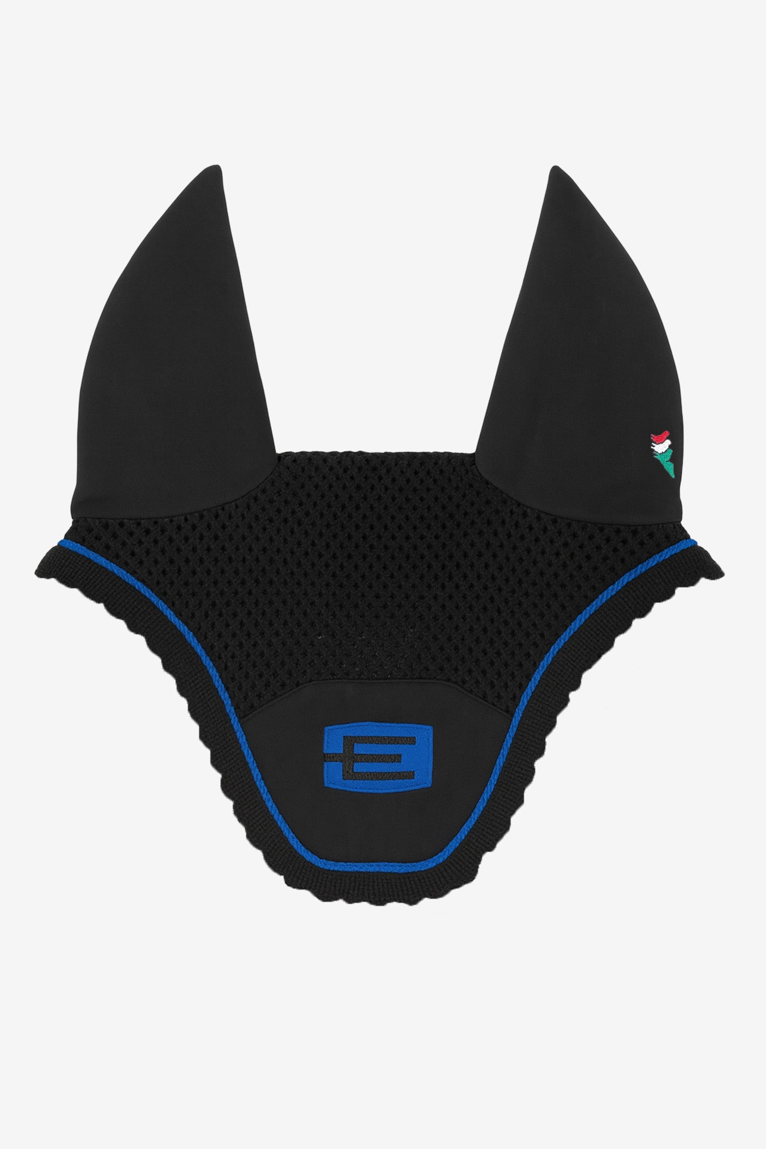 Das bekannte E-Logo ist stilvoll auf der Haube platziert und verleiht einen exklusiven Look, ohne aufdringlich zu wirken. Die elastischen Ohren sorgen für eine perfekte Passform, auch bei Pferden, die ihre Ohren viel bewegen, und die strapazierfähige gehäkelte Front garantiert, dass die Haube ihre Form über die Zeit behält.