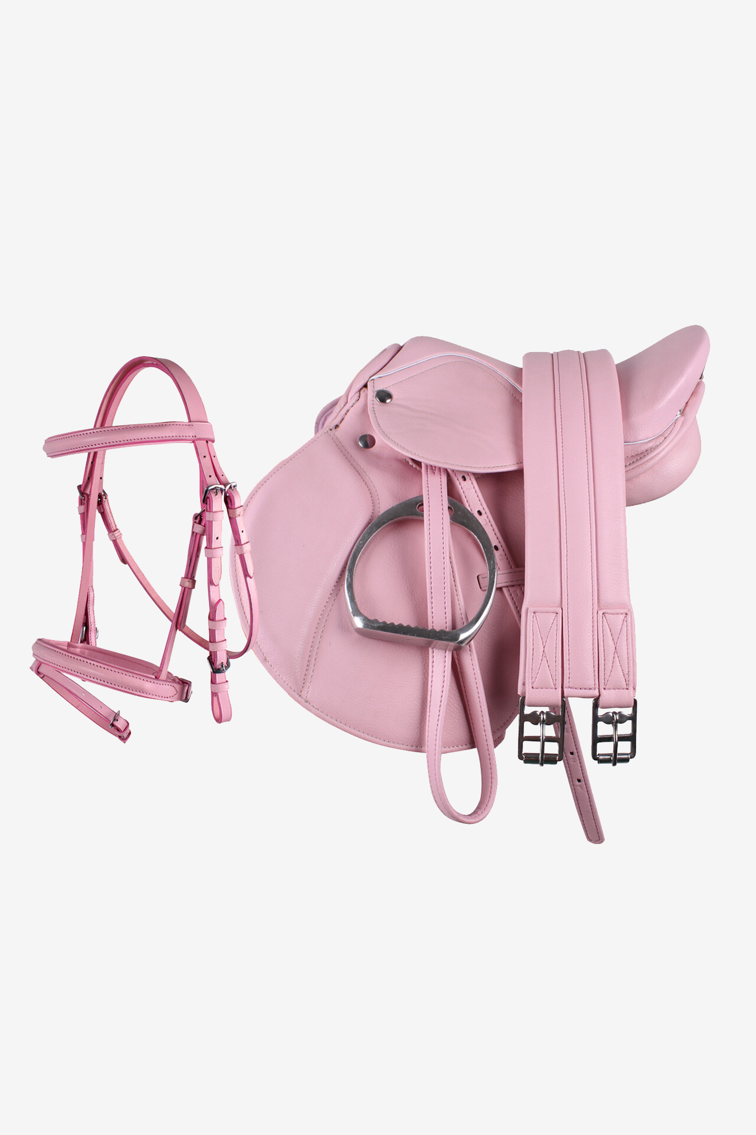 (Es kann einen leichten Farbunterschied zwischen der rosa Trense und dem Sattel geben)