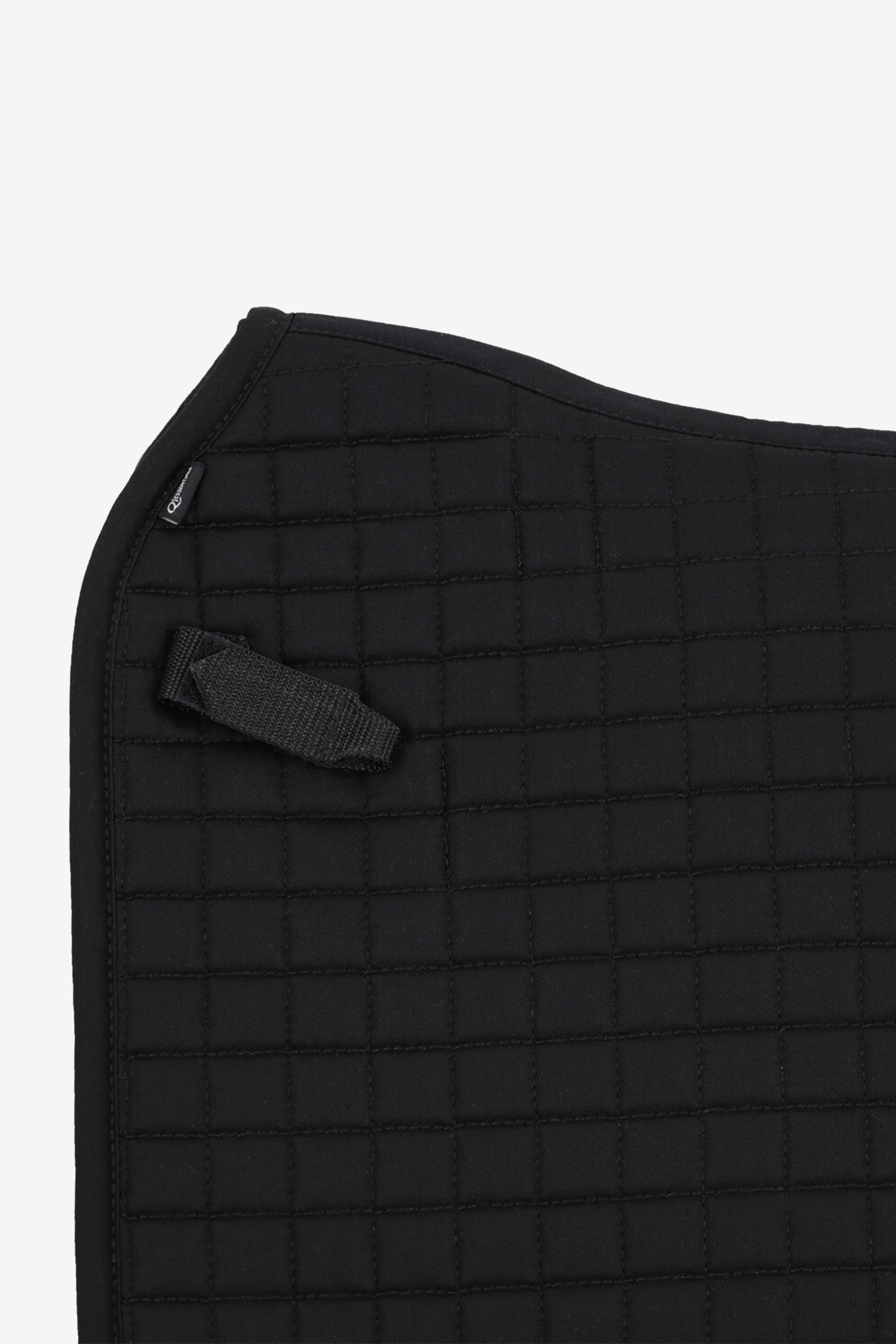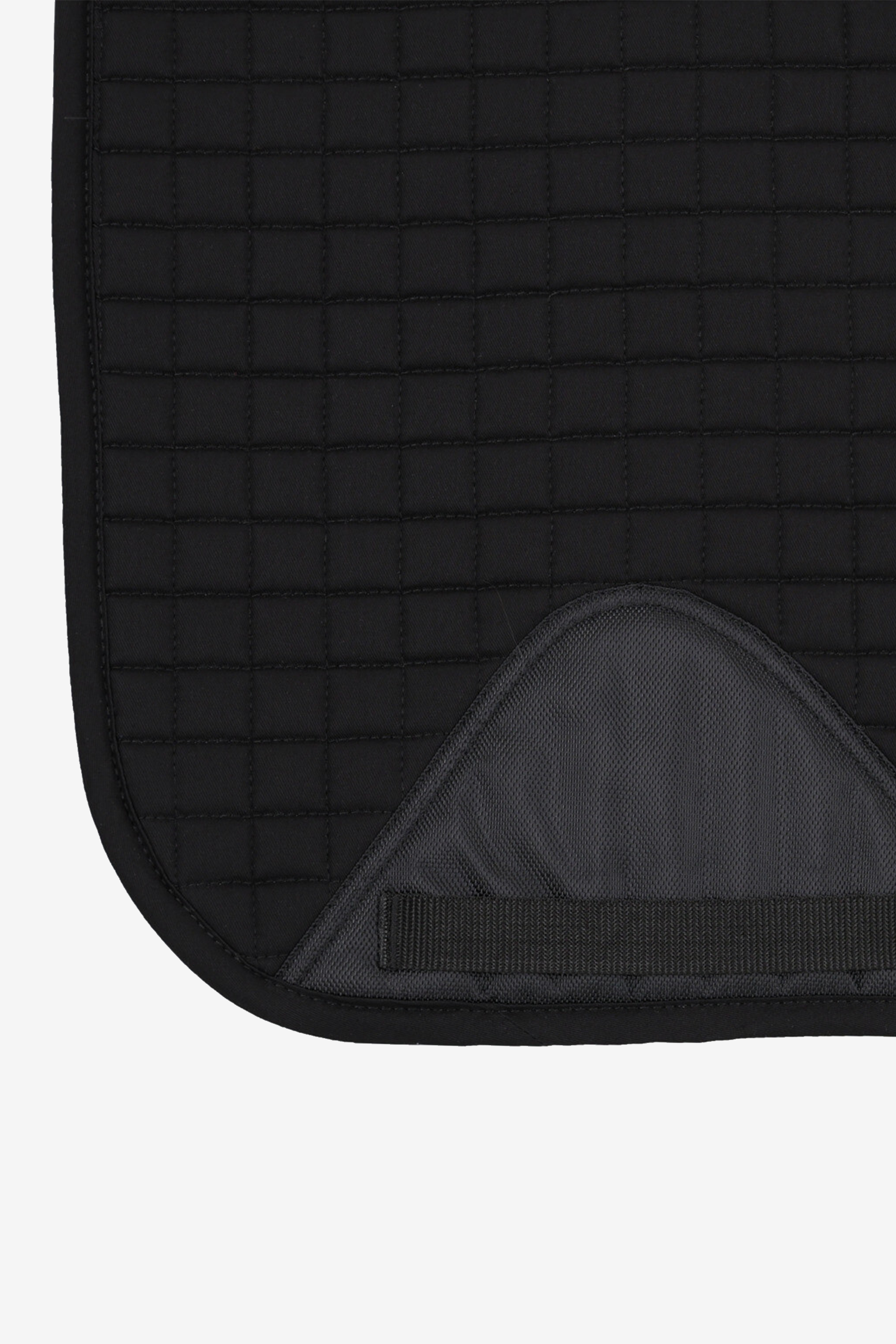 Die Schabracke besteht aus Baumwolle mit einer Innenseite aus Polyester, die für gute Atmungsaktivität sorgt und Feuchtigkeit ableitet. Die verstärkte Polsterung oberhalb der Gurtstrupfen sorgt für zusätzliche Strapazierfähigkeit und macht die Schabracke besonders robust für den täglichen Gebrauch.