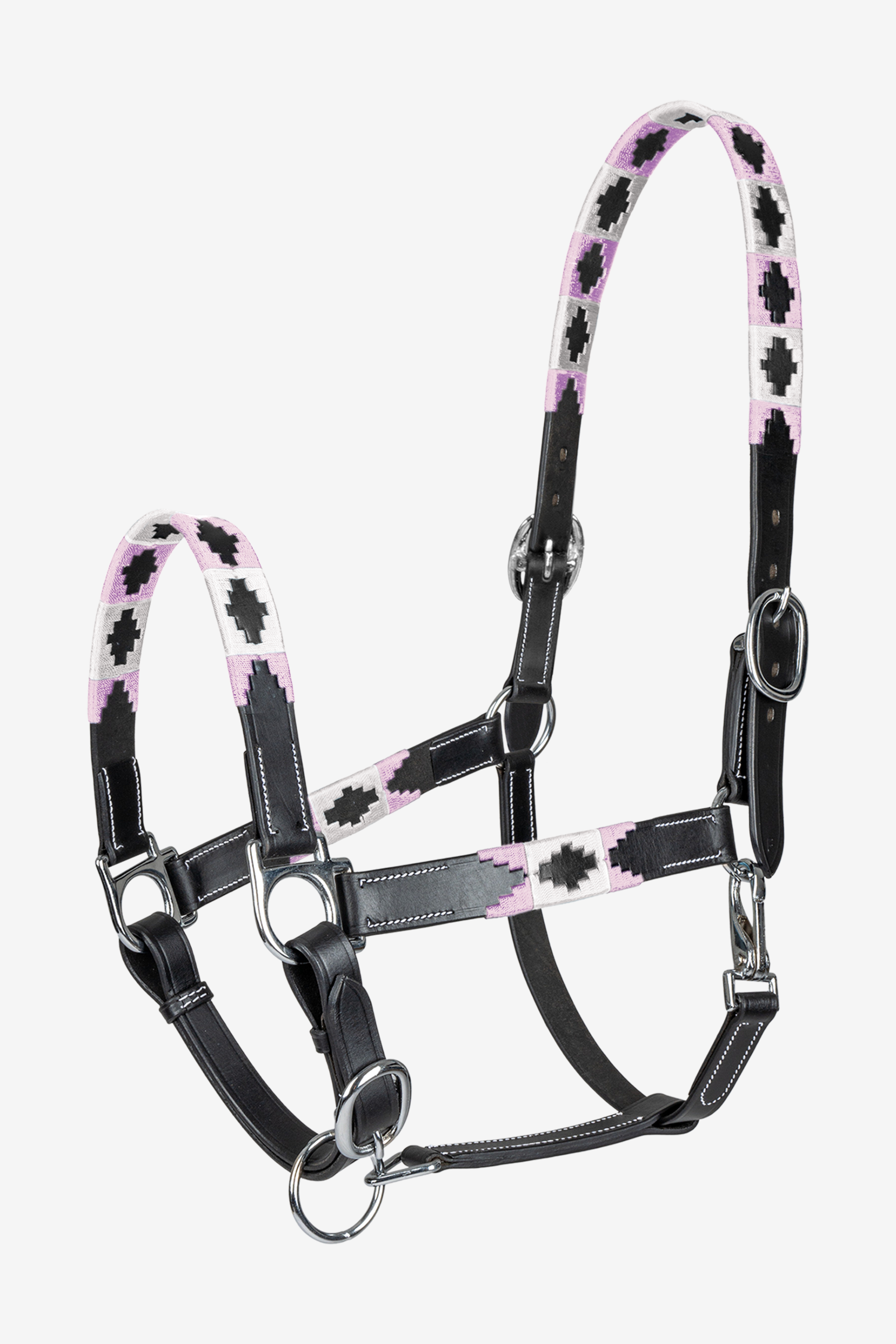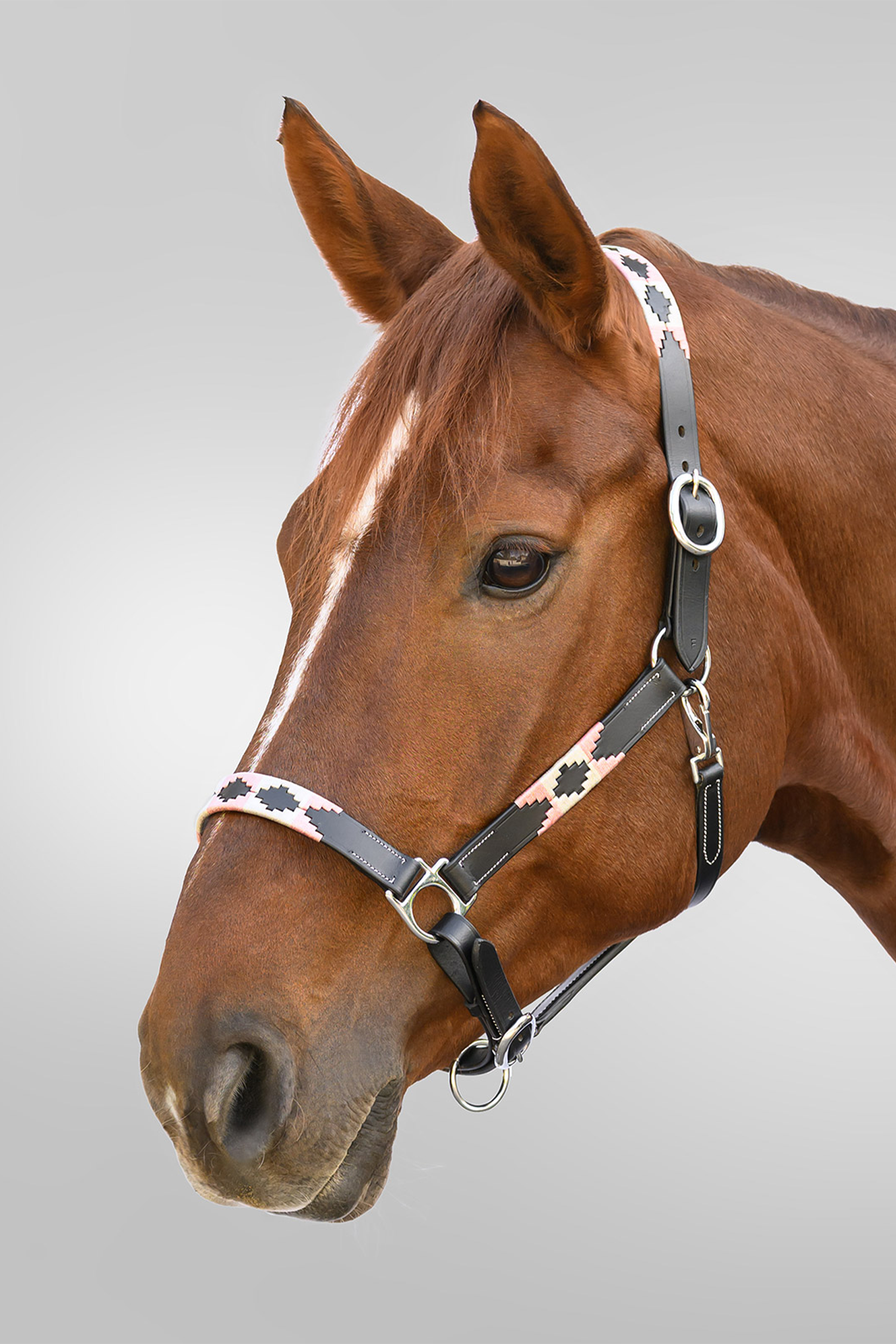 Elegantes Lederhalfter mit dekorativen, von Chukka inspirierten Details, die einen klassischen und stilvollen Eindruck vermitteln. Es ist so gestaltet, dass Funktion und Design kombiniert werden, wodurch es sowohl im Stall als auch beim Transport gleichermaßen geeignet ist.