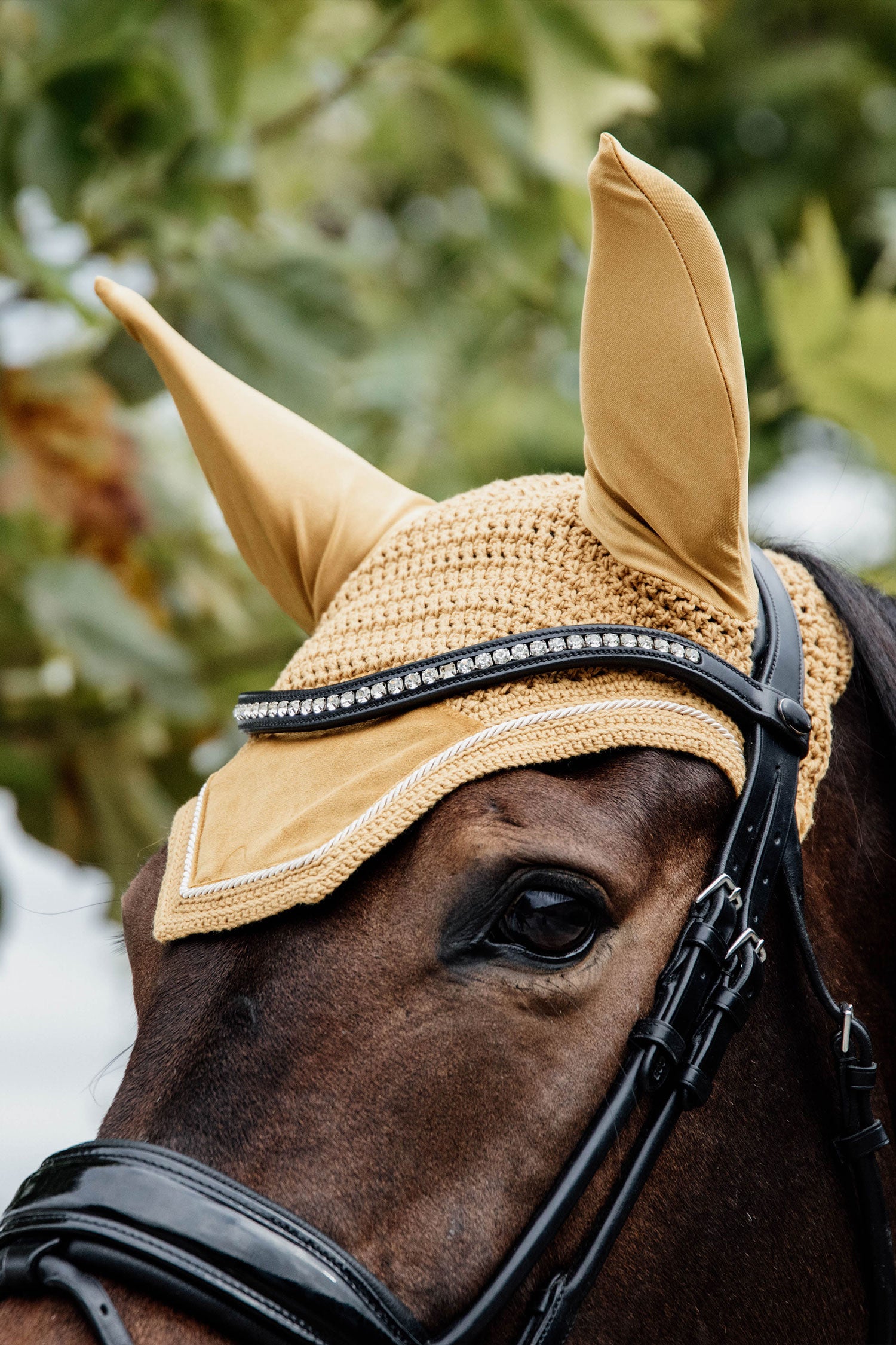 The veil is finished with stylish velvet details that match the Velvet collection from Kentucky. Fly Veil Basic Velvet protects the horse's ears from flies during riding and is a stylish detail.