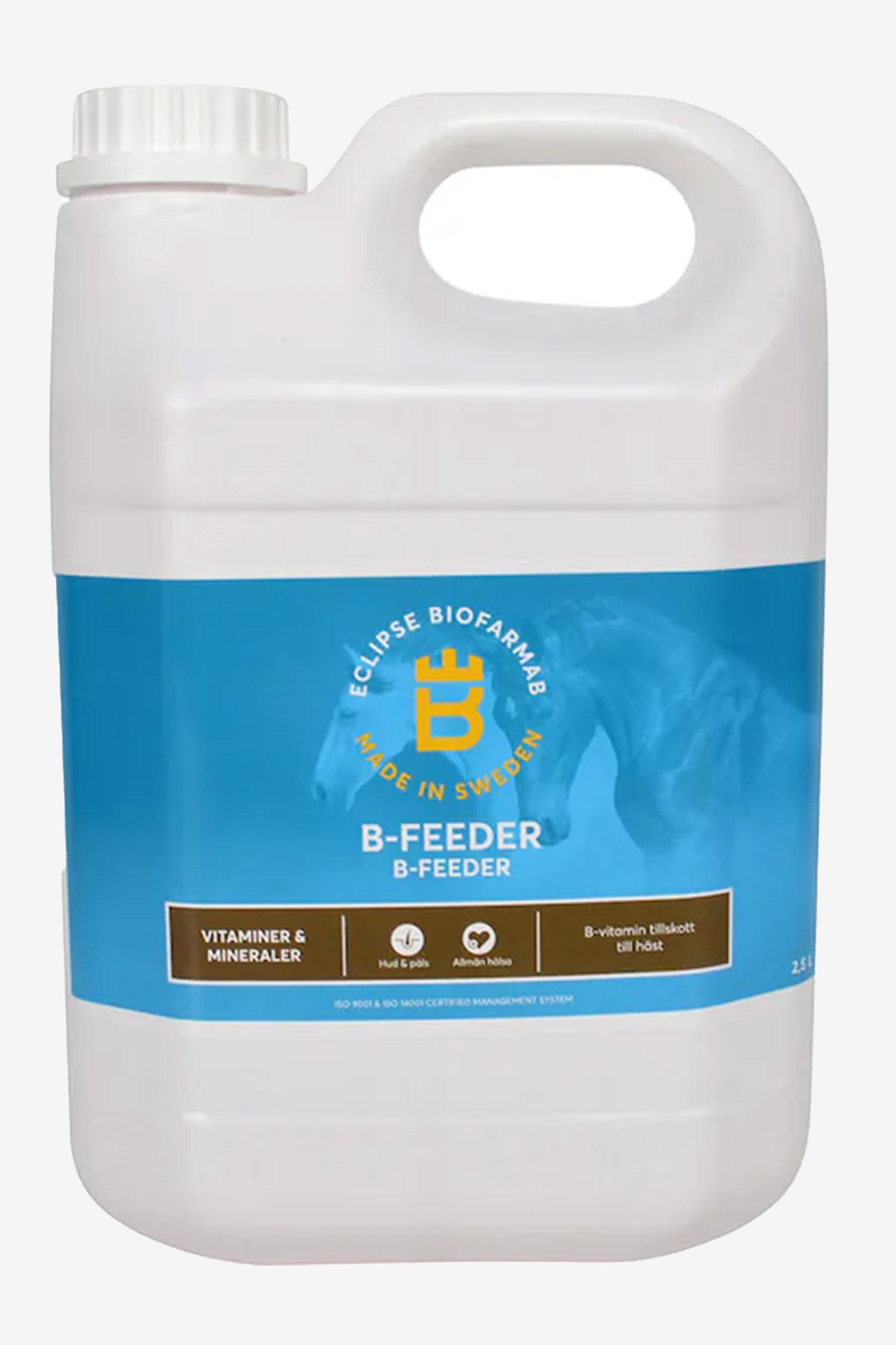 Liquid B-vitamin from Eclipse Biofarmab is marked with BSD (the Swedish Animal Care Products Industry Organization) – a guarantee that the product meets Swedish legislation and all requirements for labeling and registration.
