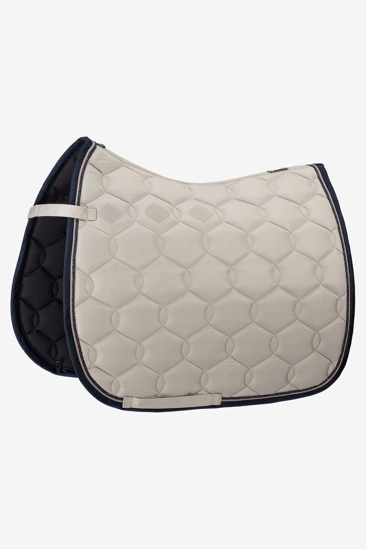 The Eskadron Glossy Wave Contrast Saddle Pad in classic beige is a saddle pad that combines glossy high-tech material with high comfort and perfect fit. The wave-shaped quilting and contrast details provide an elegant yet sporty expression, perfect for both training and competition.