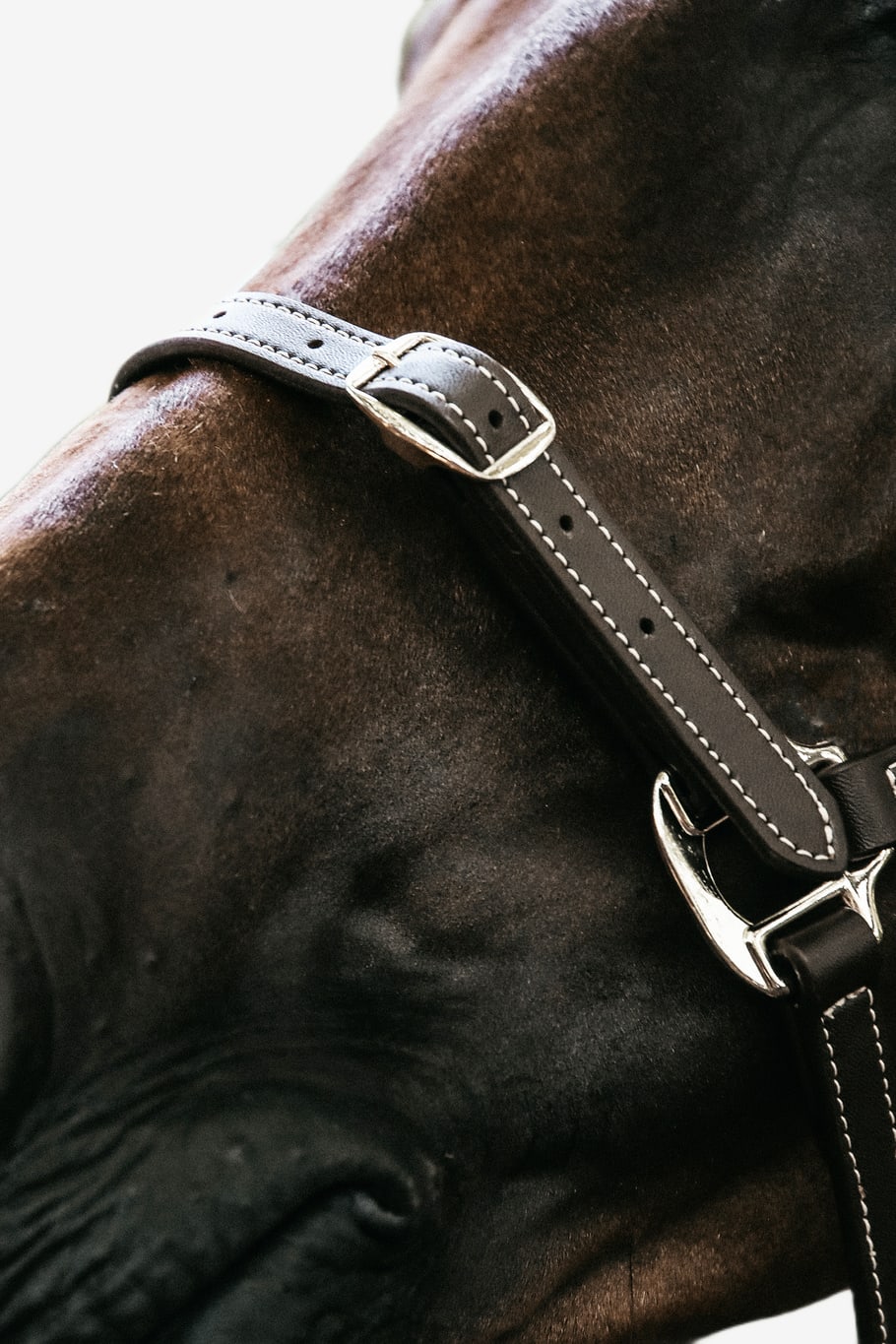 Elegant and beautifully designed with an anatomical headpiece with soft padding for pressure distribution. Adjustable headpiece on both sides as well as over the nose with fine brass buckles. Quick-release snap under the cheek.