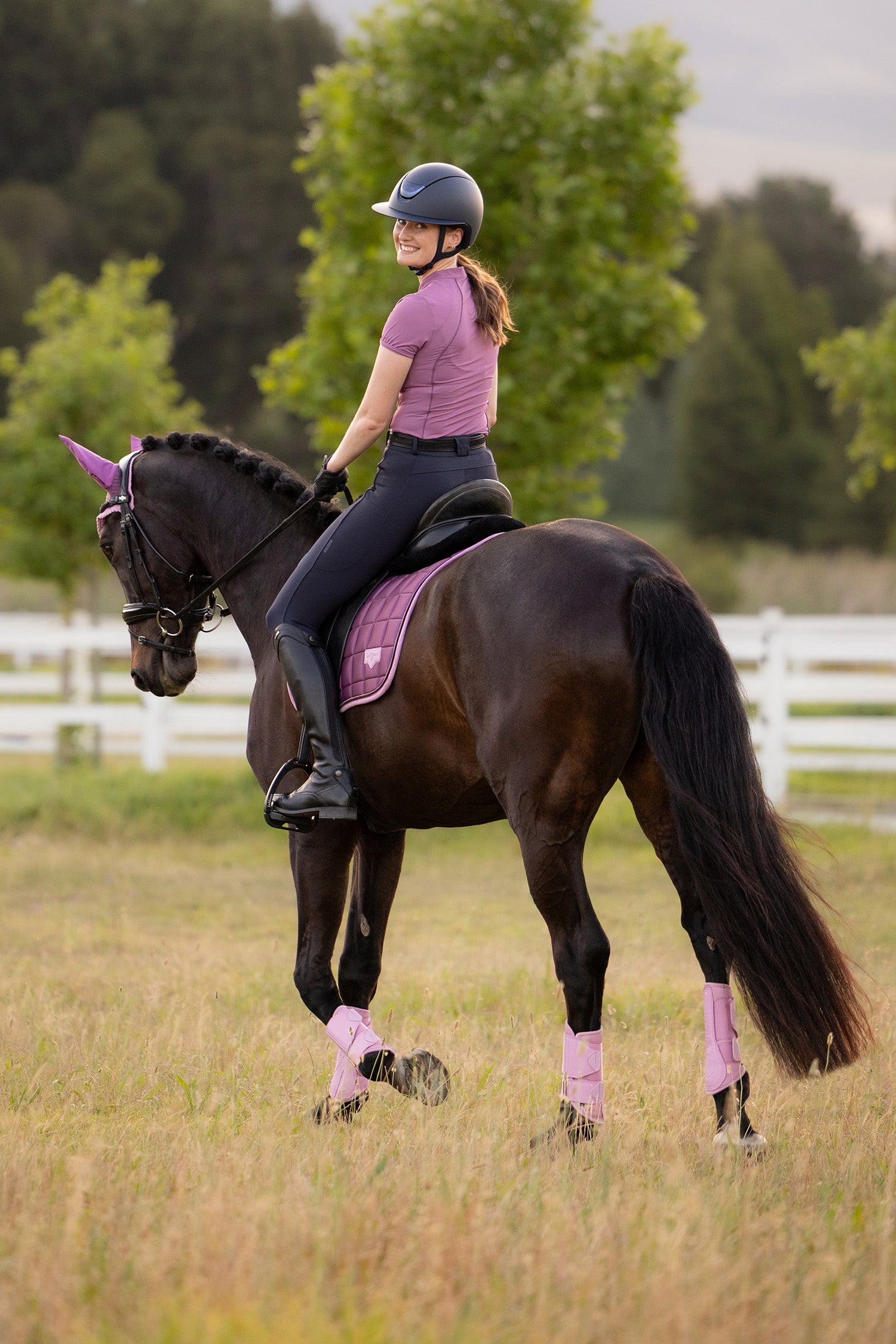 Outer fabric in Loire satin with a soft and luxurious feel. Inside in bamboo blend for optimal comfort, ventilation, and moisture regulation. Ergonomic dressage fit for stability and close contact.