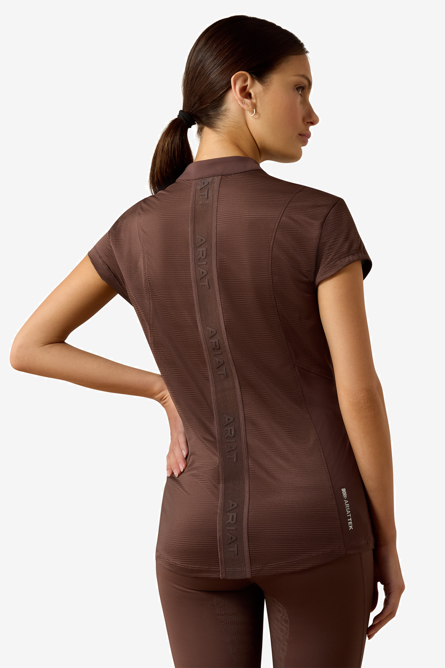 La fermeture éclair mi-longue à l'avant permet d'ajuster facilement la ventilation selon les besoins et offre une coupe flexible. Les panneaux en mesh sur les côtés favorisent la circulation de l'air et améliorent l'évacuation de l'humidité, rendant ce haut agréable à porter tout au long de la séance d'équitation. La belle couleur pommel brown apporte une touche douce et élégante, adaptée aussi bien à l'écurie qu'au quotidien.