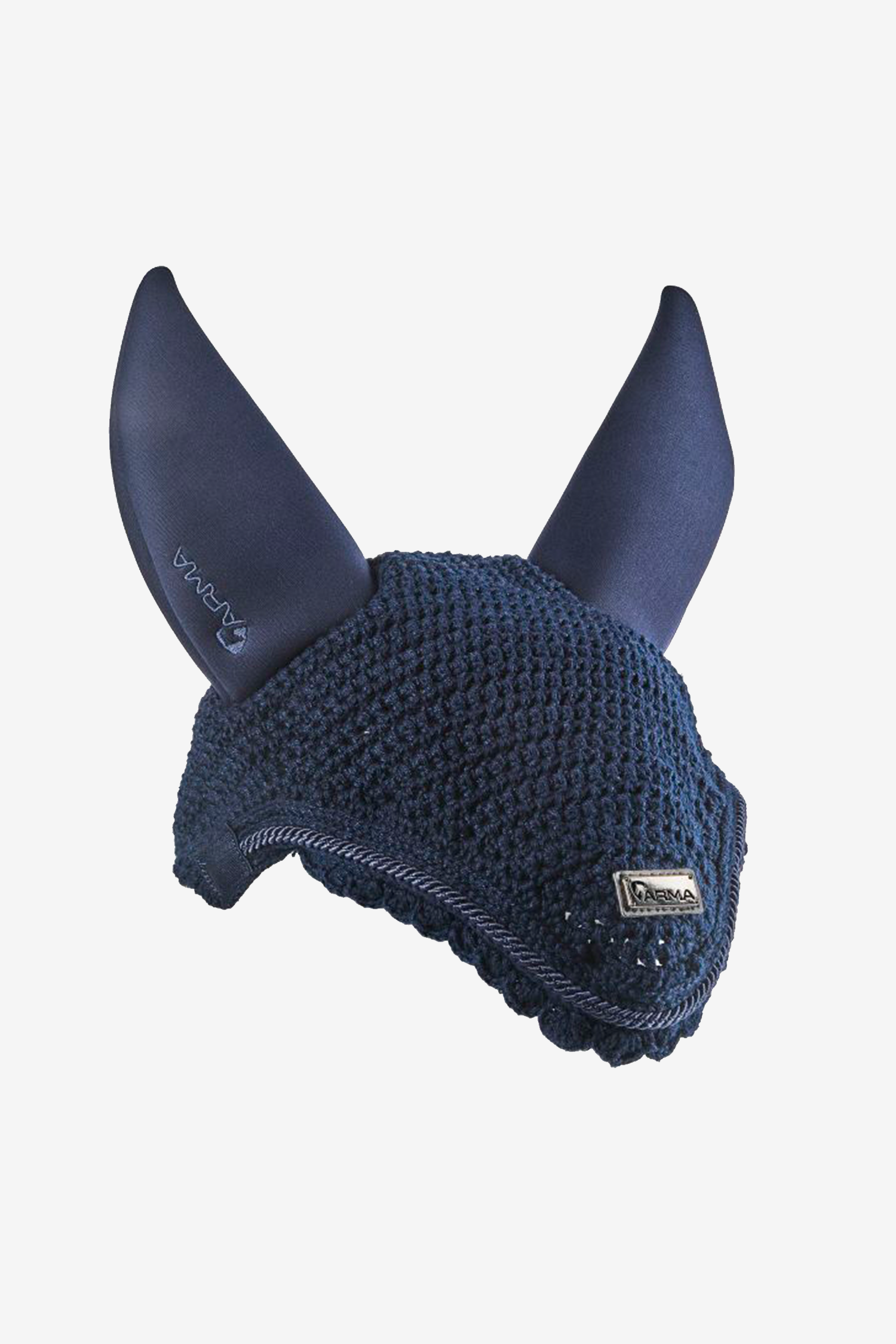 Le bonnet anti-bruit est fabriqué dans une matière douce et extensible qui épouse la forme de la tête du cheval sans exercer de pression ni provoquer d'irritation. Il couvre les oreilles de manière confortable et filtre les sons forts, ce qui peut être apaisant pour les chevaux sensibles ou facilement effrayés. La coupe est ergonomique afin de ne pas gêner l'équipement comme le bridon et les rênes auxiliaires.