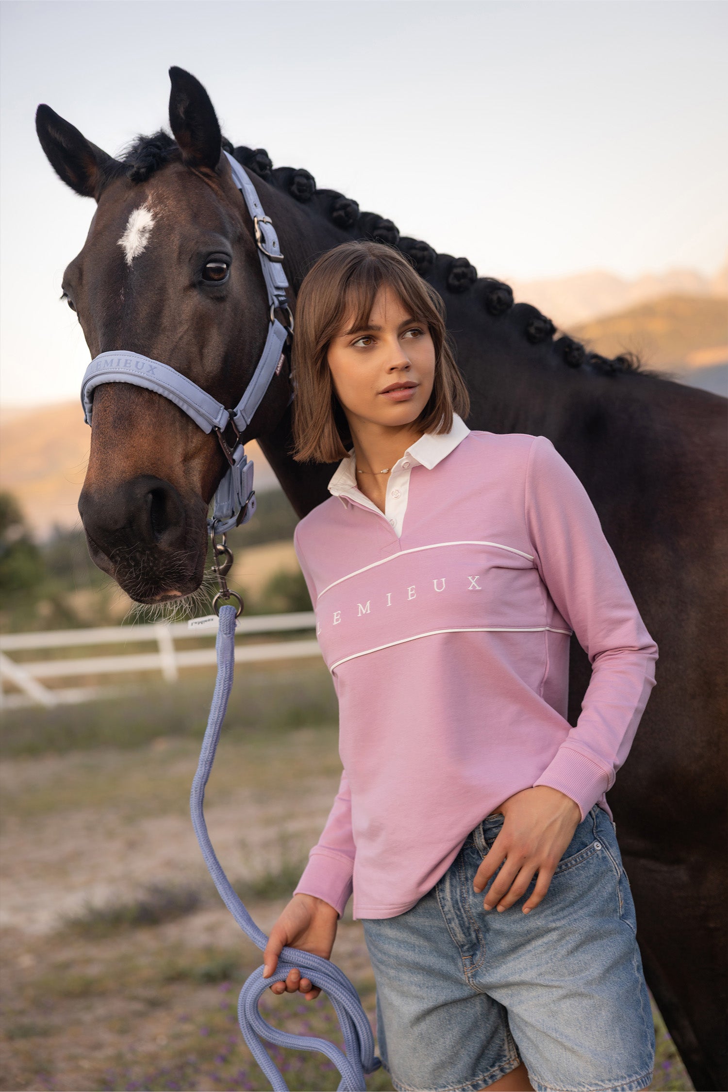 La coupe généreuse crée une silhouette légèrement carrée qui tombe joliment sur le corps, rendant le sweat à la fois confortable et flatteur. Le col classique en coton avec boutons blancs et le branding discret LeMieux apportent une finition élégante, idéale à l’écurie comme au quotidien.