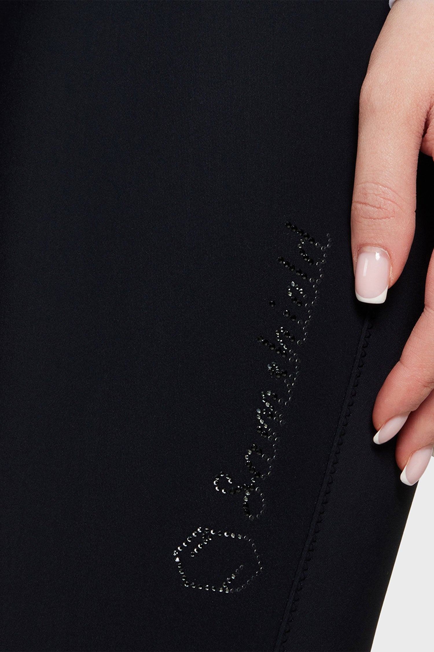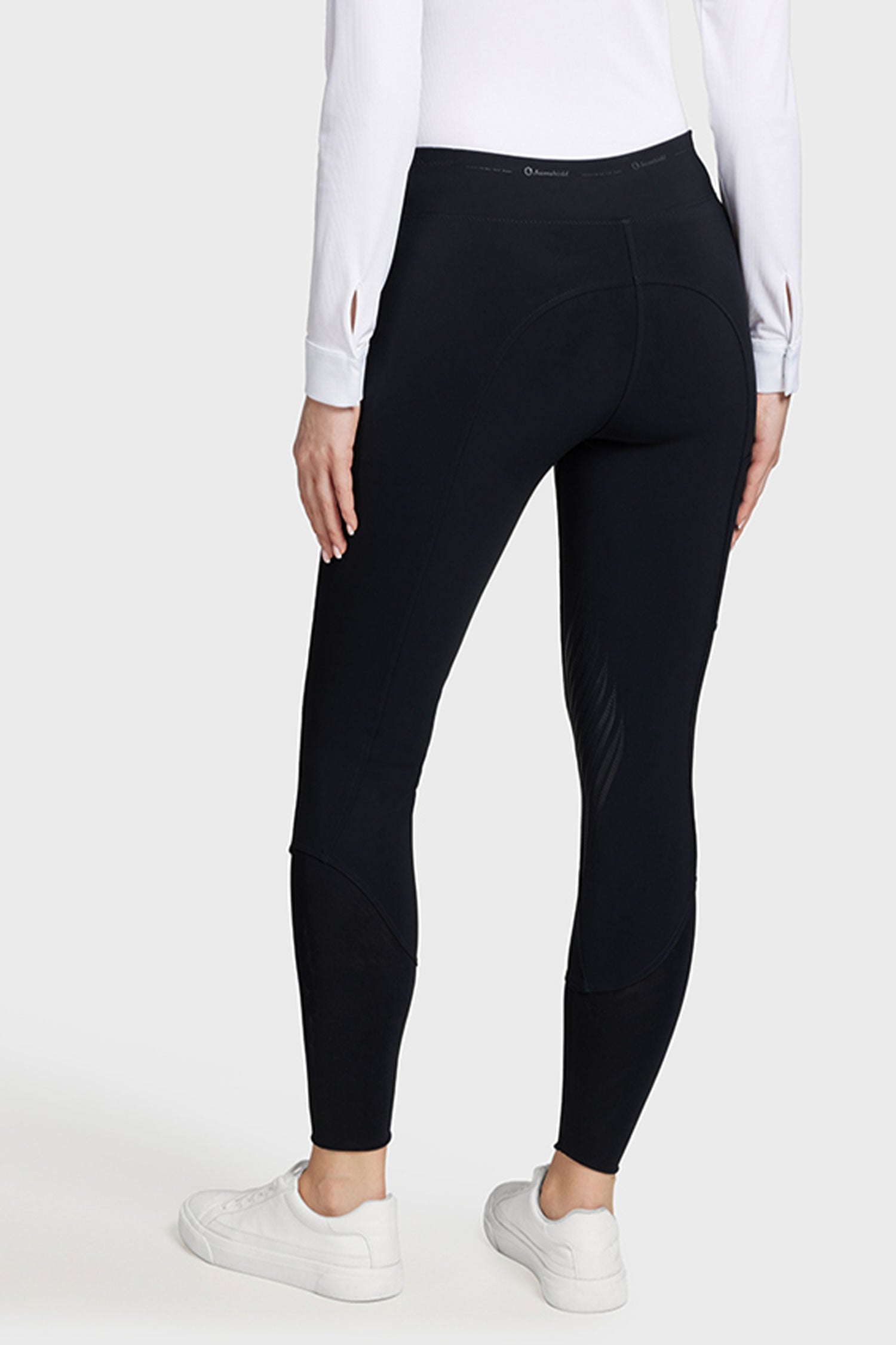 Le modèle Alpha de Samshield est très confortable à porter grâce à sa ceinture élastique sans boutons ni fermeture et à son tissu extensible, également infroissable et à séchage rapide. Il s'adapte parfaitement au corps et offre une silhouette élégante. Ce modèle est doté de grips aux genoux pour une excellente adhérence en selle. Il est également traité pour résister aux rayons UV du soleil lors des journées estivales ensoleillées. Les poches avant se ferment par une fermeture éclair. Une poche pour téléphone portable se trouve sur la cuisse gauche. Détails élégants avec le texte Samshield autour de la ceinture et leur logo en cristaux Swarovski le long de la cuisse gauche.