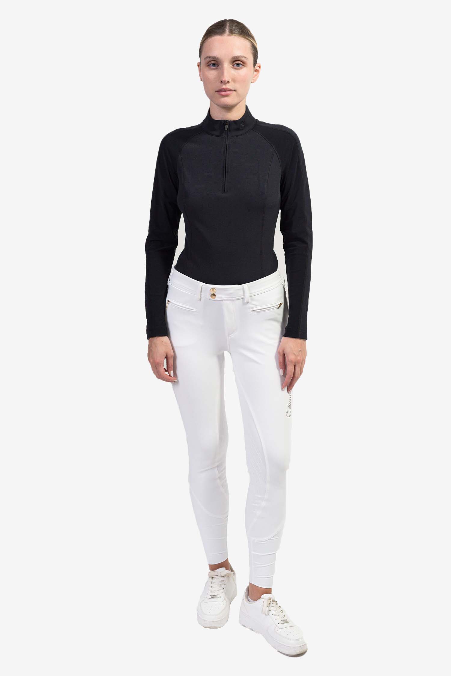 Fabriqué dans une matière très extensible, respirante et offrant une couche d'isolation contre le froid sans compromettre la liberté de mouvement. Le design polo monte très haut sur le cou et offre une esthétique élégante et moderne, complétée par la décoration Swarovski.