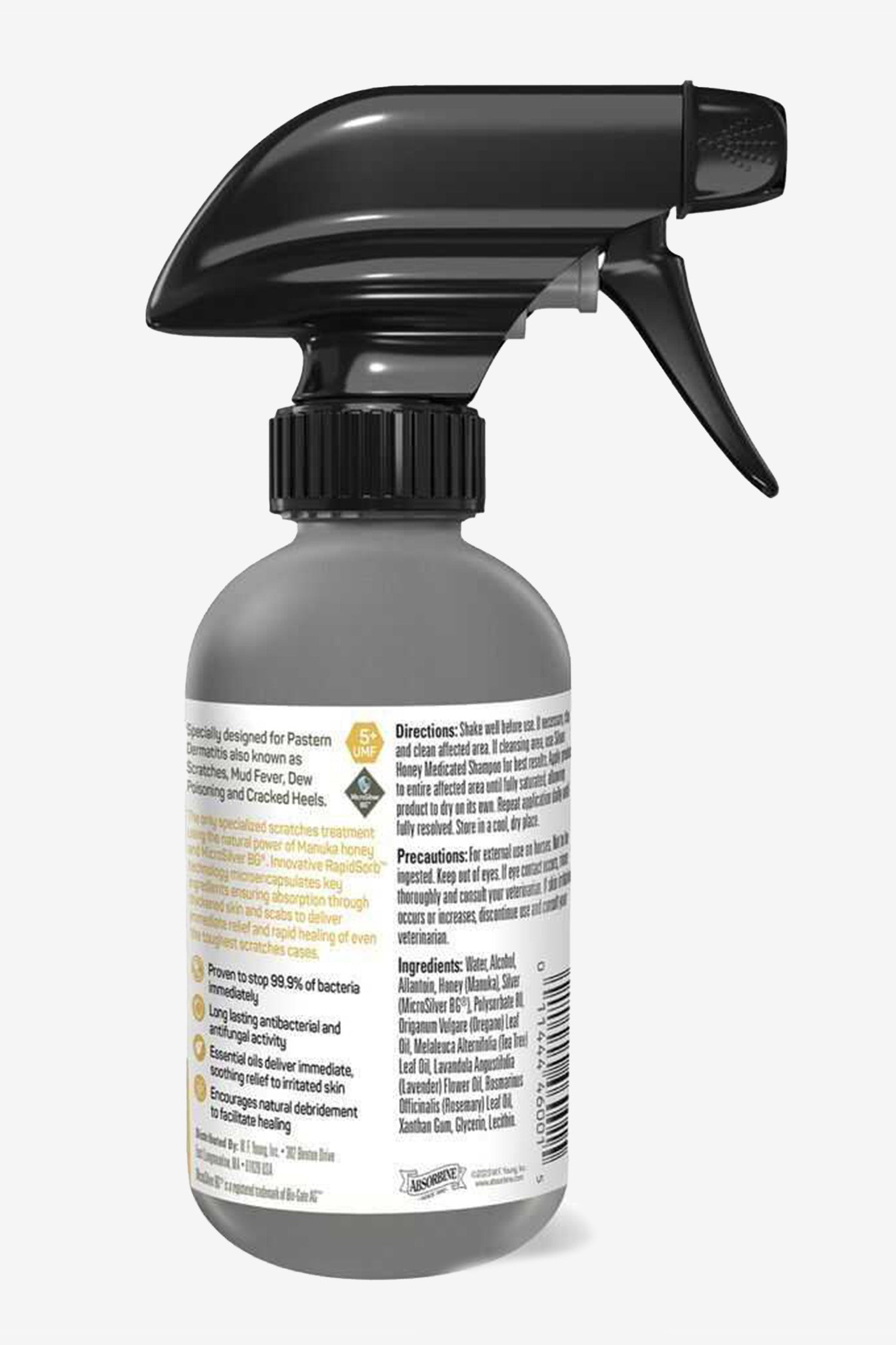 Help je paard de huid gezond te houden, zelfs onder zware weersomstandigheden, met Silver Honey® Mud Defense Spray. Deze krachtige formule is speciaal ontwikkeld voor problemen die vaak voorkomen rond de koot en de bal in natte en modderige omgevingen. Dankzij de innovatieve RapidSorb™-technologie dringt de spray door verdikte huid en korsten en zorgt voor snelle opname van Manukahoning en MicroSilver BG® – twee van de meest effectieve natuurlijke ingrediënten voor huidverzorging.