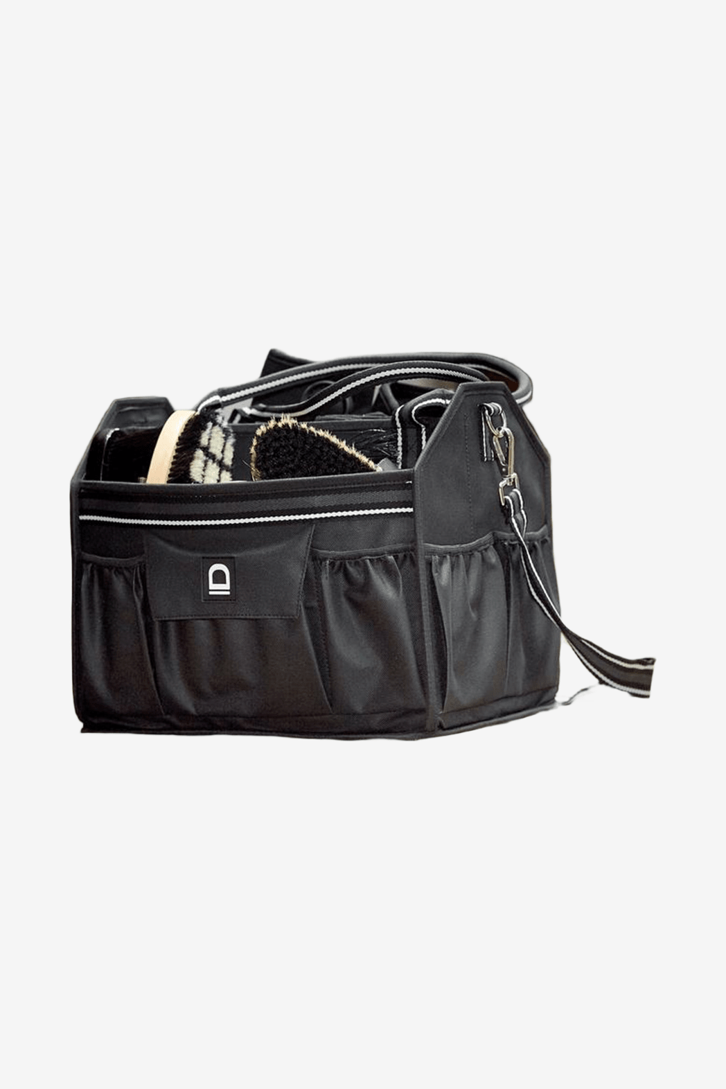 Praktische poetstas met meerdere slimme vakken voor borstels, vachtglans en overige spullen. Stabiele bodem zorgt ervoor dat de tas nooit inzakt en altijd rechtop blijft staan.