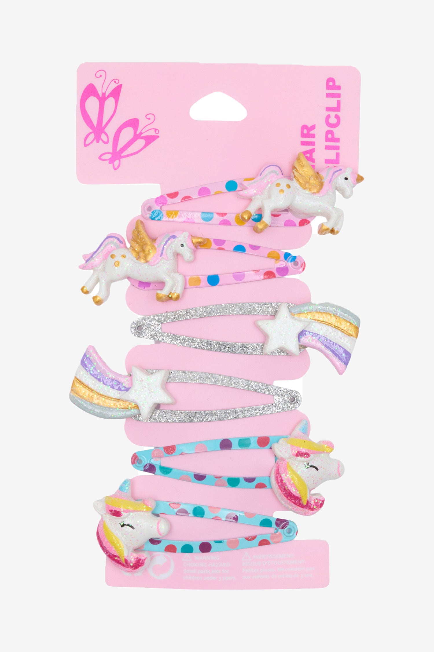 6 stycken olika klämmor till håret med olika söta motiv och mönster.