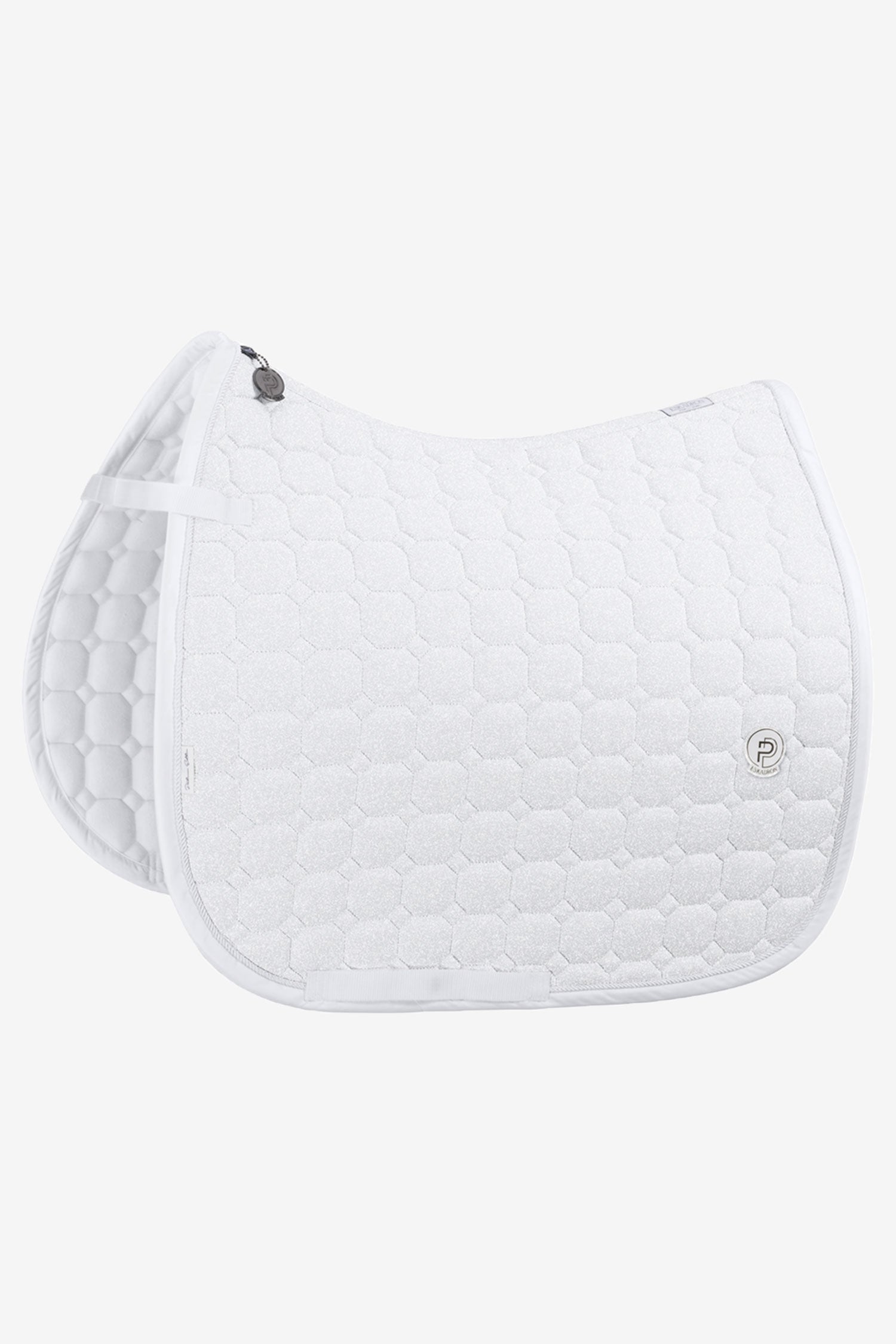 Detaljerad med stilrent kantband och ett yttre tyg av skimrande tyg som ger ett exklusivt uttryck. Hela schabraket är gjort av material som andas och håller din häst torr under ridpasset. Eskadron platinum logga snyggt placerad som en extra lyxig detalj på schabraket.
